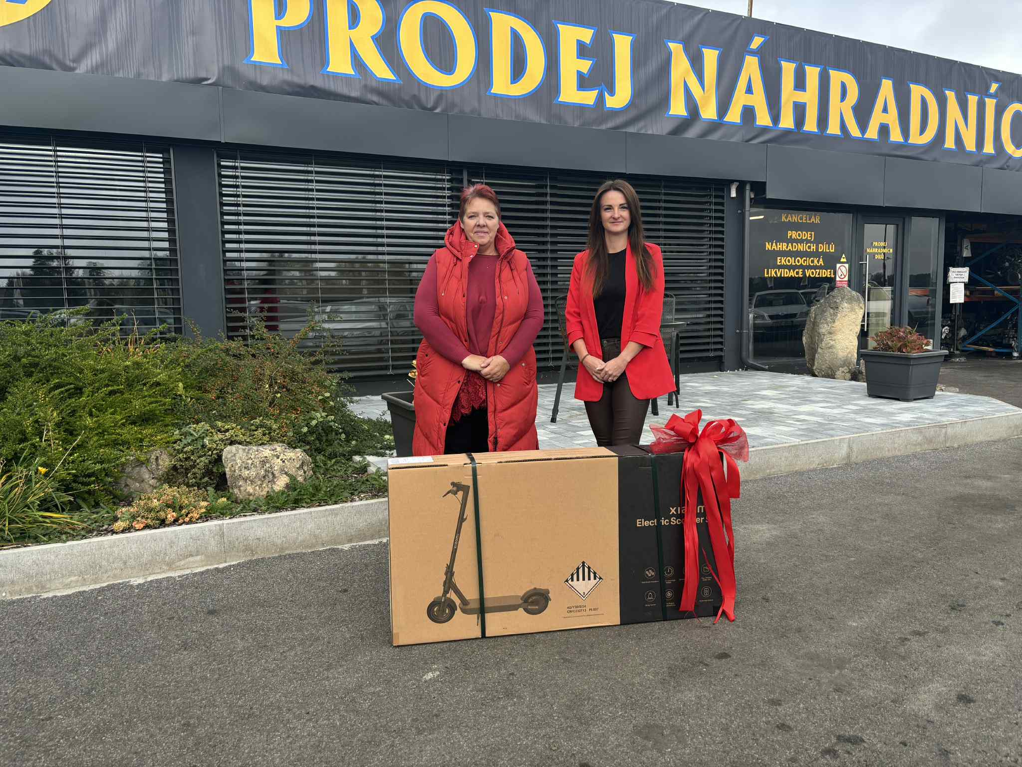 Výherce soutěže bude vyhlášen na našem webu - www.likvidace-nechanice.cz/vyhrajte-e-kolobezku, vždy nasledující týden po ukončení soutěže. Výherce budeme také kontaktovat telefonicky na číslo v předávacím protokolu. Pokud bude vozidlo předávat zplnomocněná osoba, prosím uvádějte tel. kontakt na majitele vozu.